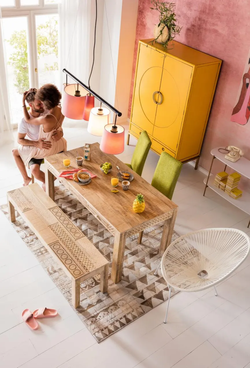 Das ursprünglich aus Indien stammende Mangoholz wurde vor einigen Jahren für die Möbelherstellung entdeckt. Es besticht mit einer hellen, natürlich braunen Farbe. Mit der frischen, klaren Optik passt es perfekt zum angesagten Massivholztrend.