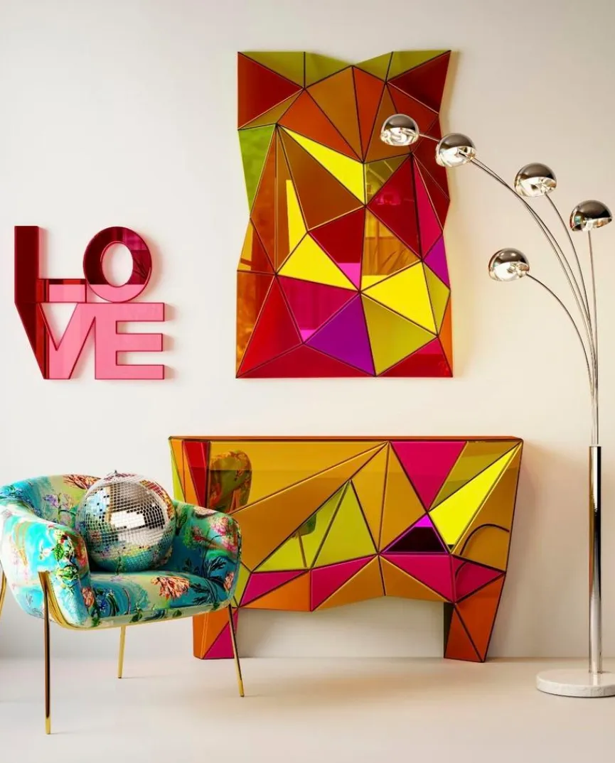 Wenn Sie das außergewöhnlich Extravagante lieben, dann ist der Wandspiegel Prisma von KARE DESIGN eine exzellente Dekoration für Sie. Die an diesem Hängespiegel kunstvoll angeordneten Prismen reflektieren einfallendes Licht in allen seinen Farben und sorgen für eine besondere Stimmung im Raum. Der Pop-Art-Wandspiegel Prisma zieht definitiv die Blicke und Aufmerksamkeit eines jeden Betrachters auf sich.