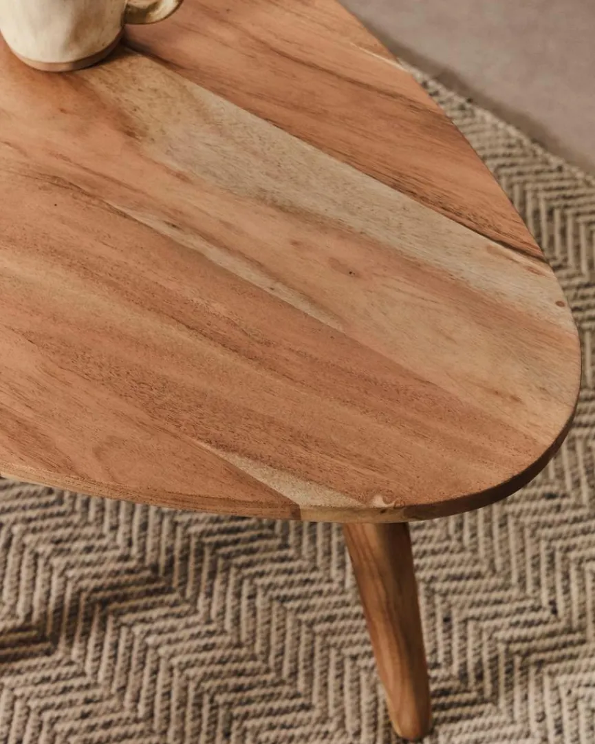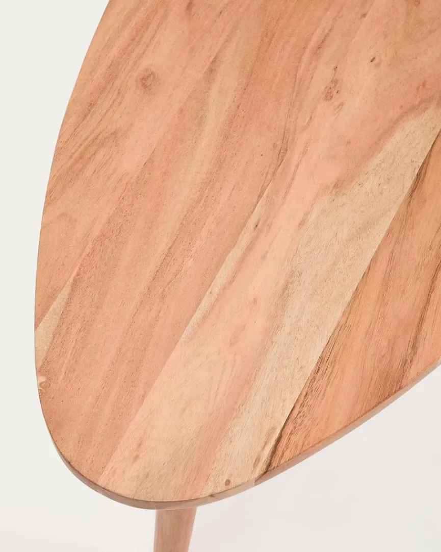 Der Couchtisch Duvani von Kave Home lenkt mit runden Formen die Blicke auf sich und wirkt ausgesprochen harmonisch. Ein gebleichtes Finish verleiht dem hölzernen Wohnzimmertisch einen besonderen Touch. Ausgesprochen gut passt der Couchtisch Duvani zum Beispiel in ein modernes Ambiente und zu einer Couch im freundlichen Scandi-Chic.