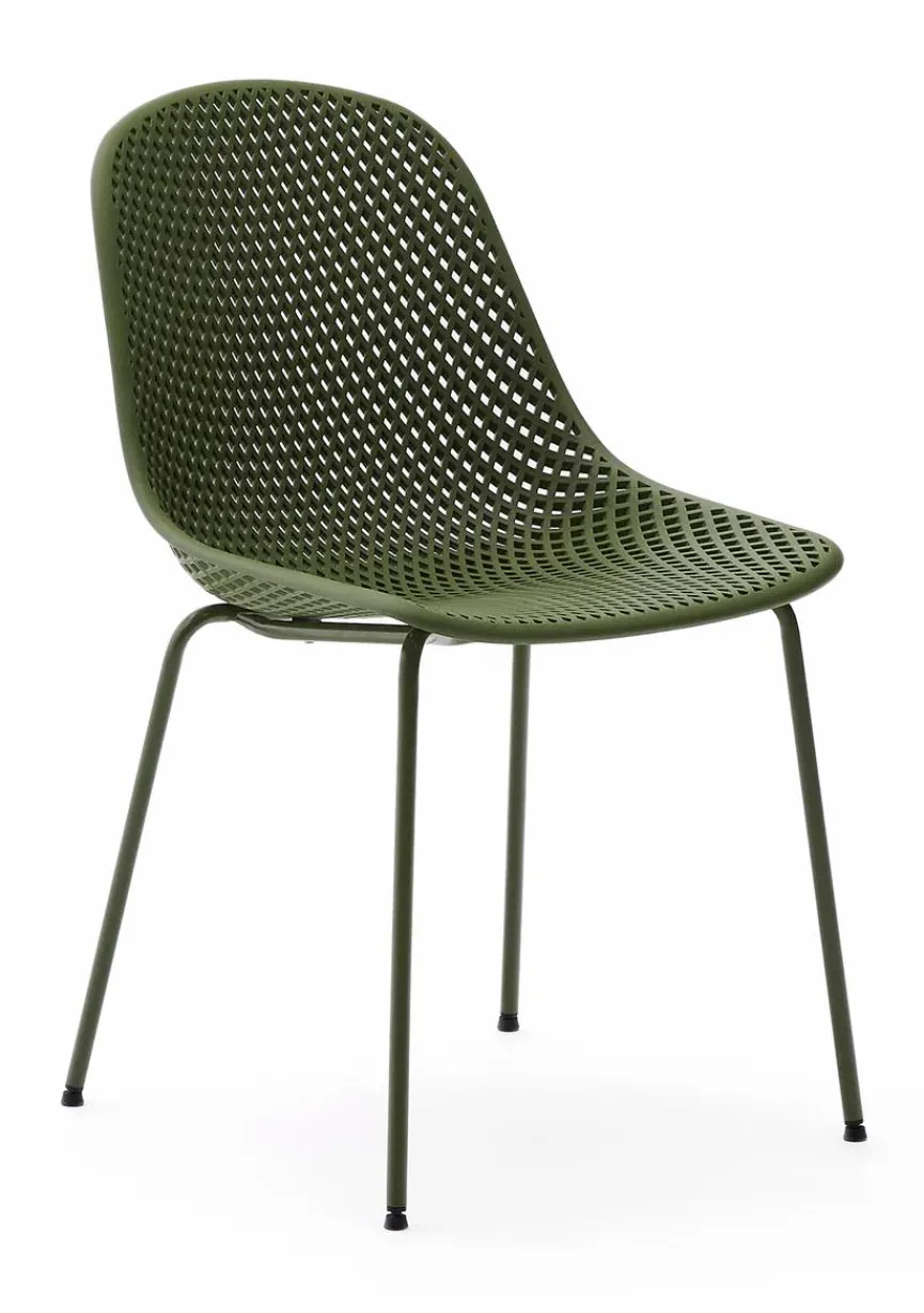 Dank seiner perforierten Sitzschale garantiert der Stuhl Quinbi von Kave Home ebenso gemütliche wie luftige Momente im Wohnbereich. Sein schlankes, dunkles und modernes Design überzeugt zudem auf ganzer Linie. Auch die variantenreichen Kombinationsmöglichkeiten erweisen sich als vorteilhaft, sobald Sie den Kave Home Stuhl Quinbi zur Einrichtung hinzuzufügen.