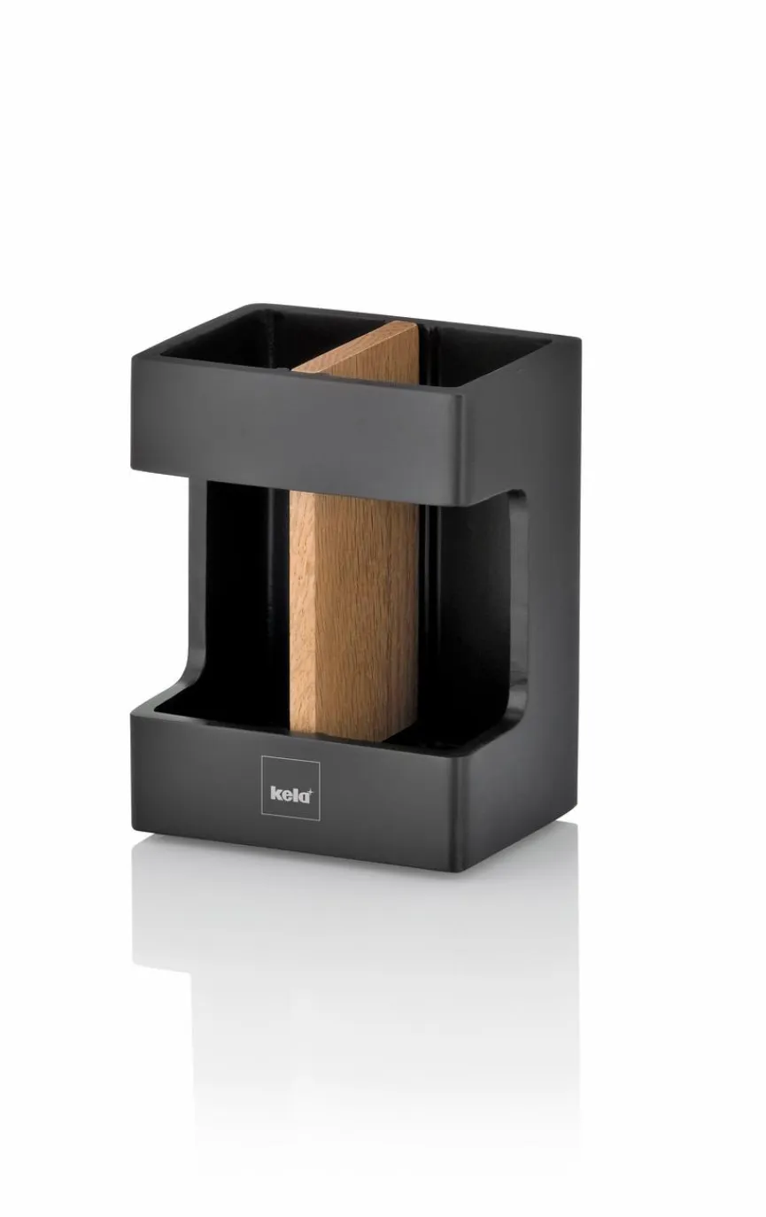 Der Zahnbürstenhalter Cube der Marke Kela ist perfekt für Sie geeignet, wenn Sie den modernen Wohnstil auch in Ihrem Badezimmer umsetzen möchten. Dieser schlicht und markant wirkende Behälter besteht aus dem unverwüstlichen Material Polyresin, während das herausnehmbare Trennelement aus Eichenholz gefertigt ist. Dank dieses Designs setzt der Zahnbürstenhalter Cube von Kela einen unverwechselbaren optischen Akzent.