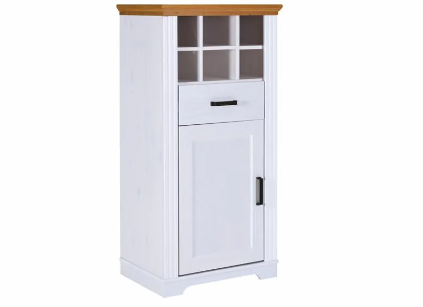 Das Highboard Maluno aus dem Hause Inter Link begeistert mit einem freundlichen Landhaus-Look. Dekorative Profilierungen im Frontbereich und ein dunkel abgesetztes Kranzprofil verhelfen dieser praktischen Kommode zu ihrer entzückenden Optik. Kombinieren Sie das Highboard Maluno am besten mit weiteren Objekten in einem ähnlichen, rustikal anmutenden Design!
