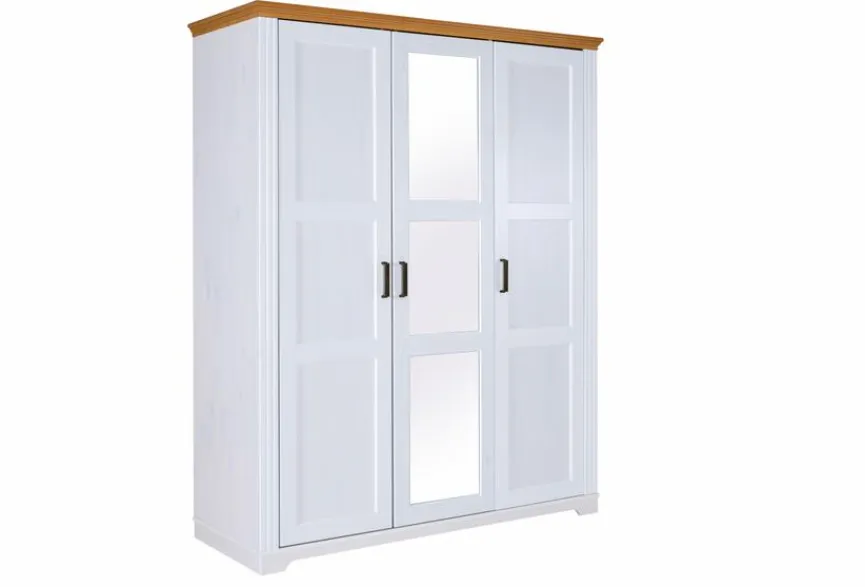 - MIt 3 Türen (1 davon mit Spiegel), 2 Konstruktionsböden, 3 Einlegeböden und 1 Kleiderstange