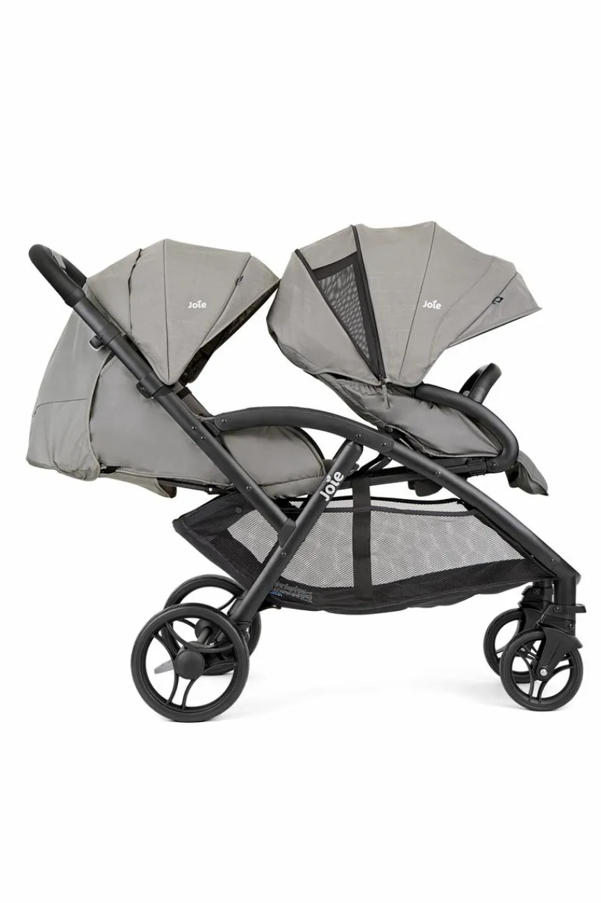 Der schmucke Zwillingsbuggy Evalite Duo Pebble von Joie bringt viele moderne Features mit. Dazu zählen zum Beispiel der Fünf-Punkt-Sicherheitsgurt mit Soft-Touch-Polsterung, schwenk- und feststellbare Vorderräder, die 4-Rad-Einzelfederung sowie eine leicht zu bedienende One-Touch-Bremse. Mit einem großen Sonnenverdeck, verstellbaren Rückenlehnen und einem gepolsterten Spielbügel ausgestattet, sorgt der Zwillingsbuggy Evalite Duo Pebble außerdem für ein umfassendes Wohlfühlgefühl bei Ihren Jüngsten.
