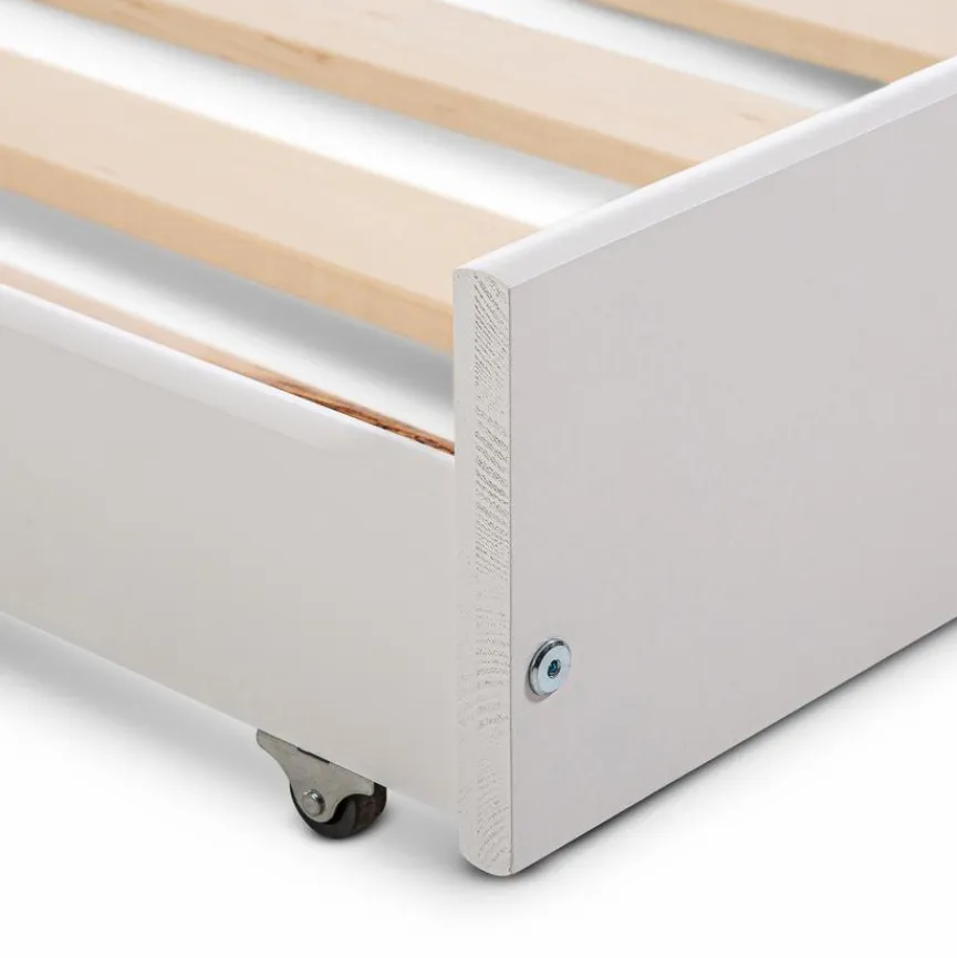 Mit dem Ausziehbett Tallinn 90×190 cm schaffen Sie im Handumdrehen einen zusätzlichen Schlafplatz für Freunde, sodass einer Pyjamaparty nichts mehr im Wege steht. Dank der Rollen kann es außerdem kinderleicht hervorgezogen und im Anschluss wieder platzsparend verstaut werden. Besonders schön ist beim Ausziehbett Tallinn 90×190 cm auch der integrierte Lattenrost, der für ausreichend Stabilität sorgt.