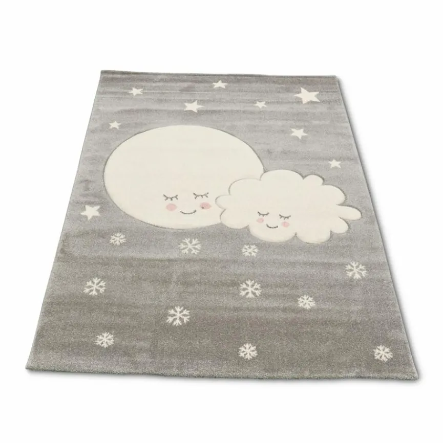 Dieser Kinderteppich Kids 160×230 cm eignet sich hervorragend für das Zimmer der Sprößlinge. Mit seinem schönen Design wirkt der Kinderzimmerteppich beruhigend, denn er zeigt einen schlafenden Mond, eine Wolke, Sterne und Schneeflocken. Natürlich kann auf dem Kinderteppich Kids 160×230 cm auch ausgiebig herumgetollt werden.