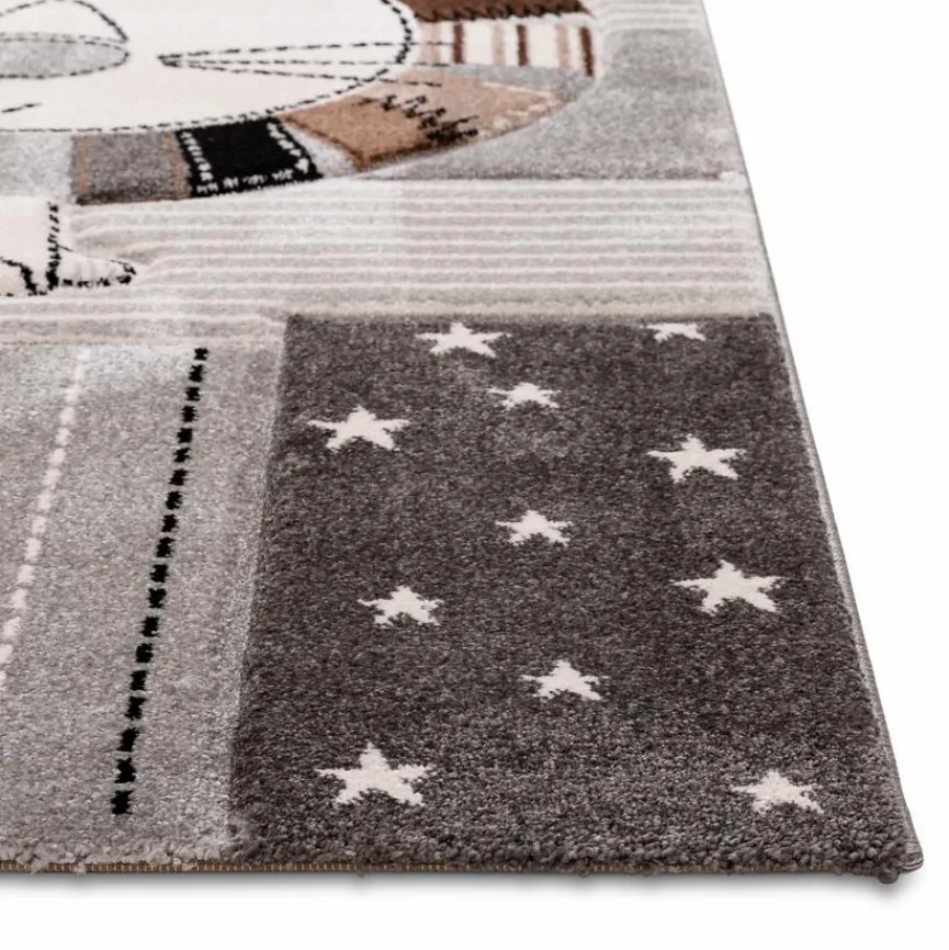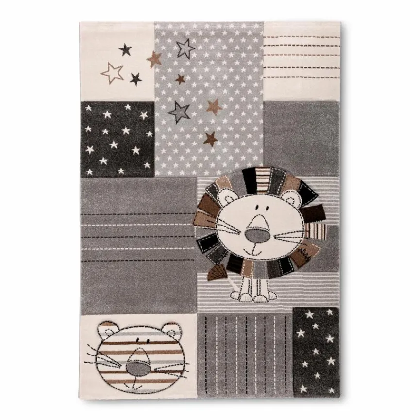 Ein Mustermix und niedliche Löwen-Motive schmücken den hochwertigen Kinderteppich Kids 80×150 cm, der zu einem wohnlichen Ambiente beiträgt. Auf dem weichen Kinderzimmerteppich kann sich Ihr Nachwuchs niederlassen und spielen, Bilderbücher ansehen oder eine Runde toben. Dabei schützt der Kinderteppich Kids 80×150 cm vor Bodenkälte und reduziert zuverlässig die Lautstärke.
