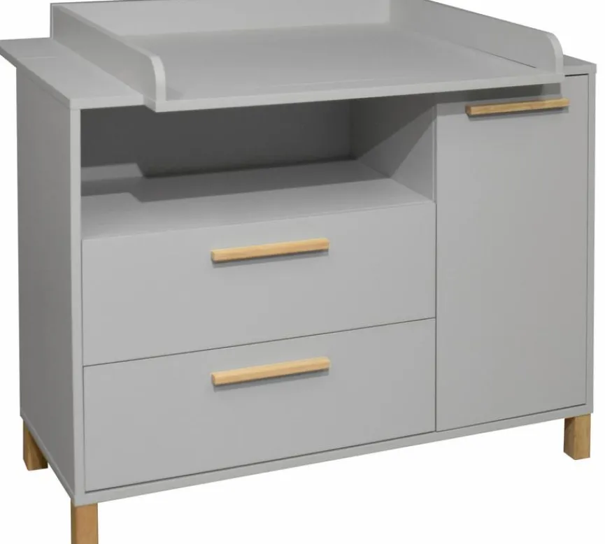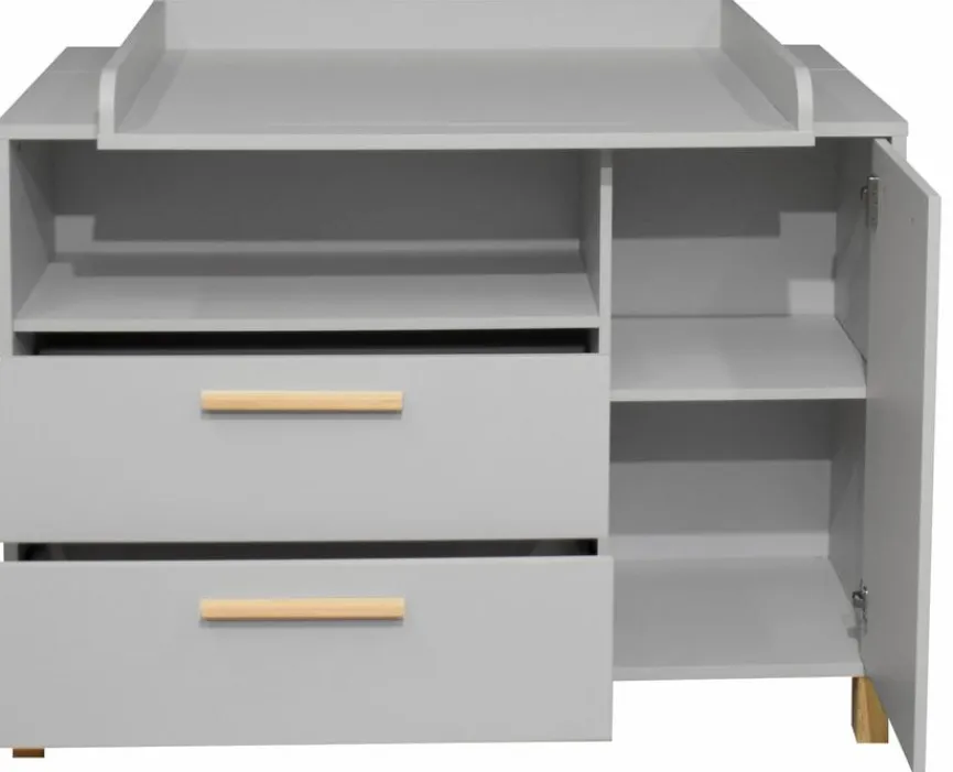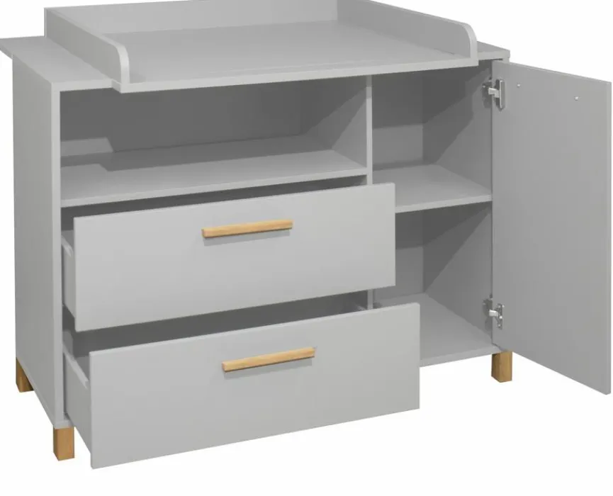 - Wickelkommode inkl. Wickelaufsatz, mit 1 Tür, 1 Einlegeboden, 2 Schubkästen und 1 offenen Fach