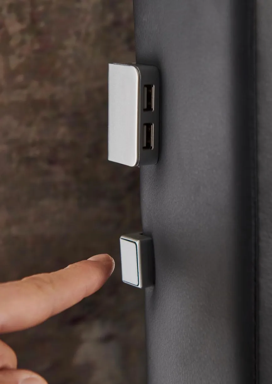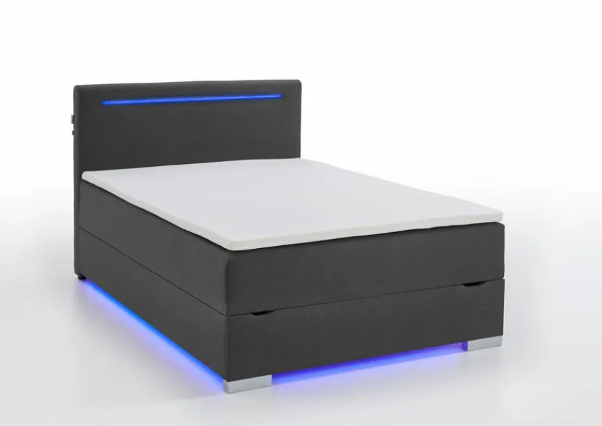 - Umlaufende LED-Beleuchtung auf der Unterseite, Kopfteil inkl. LED-Beleuchtung und USB-Anschluss