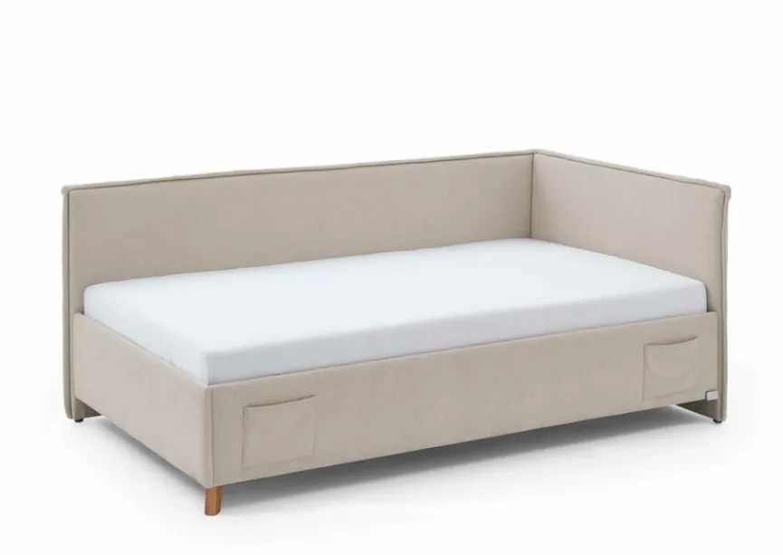 - Inkl. Kopfteil und Rückenelement jeweils mit umlaufender Biese und 2 Betttaschen