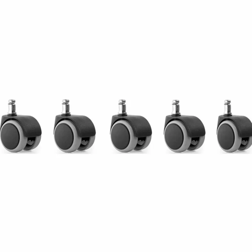 Das Hartbodenrollen 5er Set ist die perfekte Lösung, um passende Sitzmöbel damit auszustatten. Die Stuhlrollen garantieren gute Beweglichkeit und lassen sich problemlos steuern. Sie sind leicht zu montieren und ideal für alle Holz-, Parkett-, Fliesen- und Steinböden geeignet.