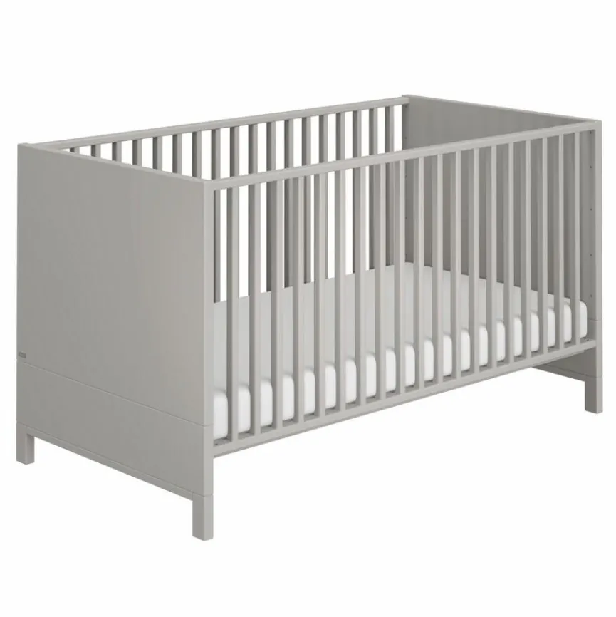 - Babybett inkl. 3 Schlupfsprossen und 4-fach höhenverstellbaren Federleistenrost, Gitterseiten aus massiver Buche in Kieselgrau lackiert, Umbaubar zum Juniorbett oder Sofa durch optional gegen Mehrpreis erhältliche Bettseiten, Belastbarkeit bis max. 75 kg