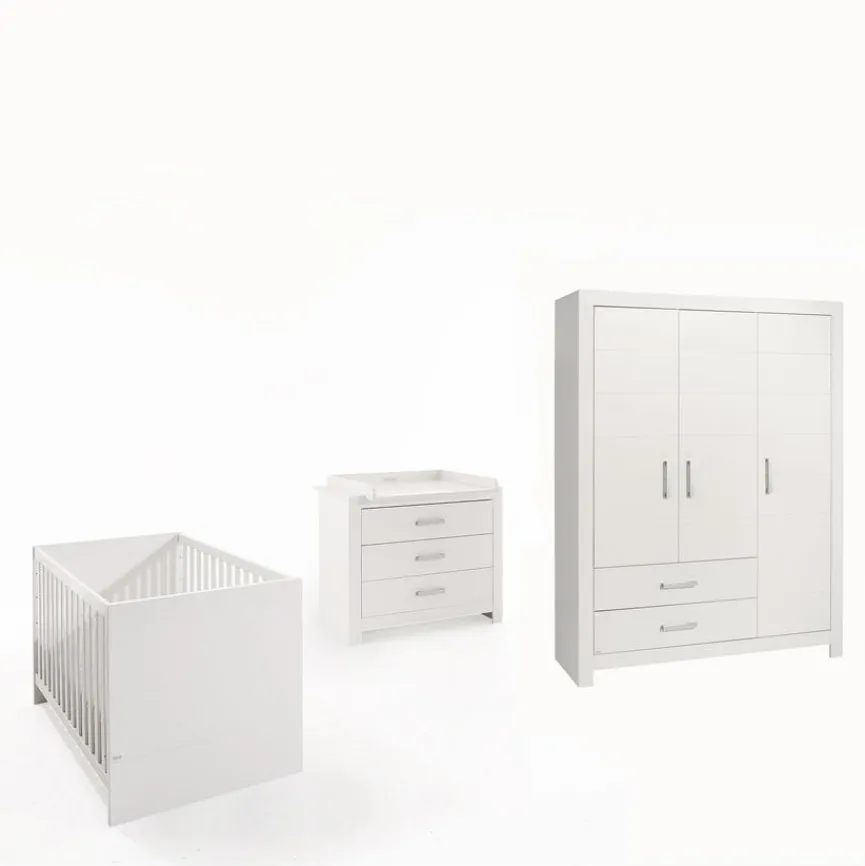 - Set besteht Babybett 70 x 140 cm, Wickelkommode BHT 110 x 92 x 55 cm, Wickelaufsatz BHT 110 x 10 x 78 cm und Kleiderschrank BHT 156,8 x 205,3 x 55,3 cm