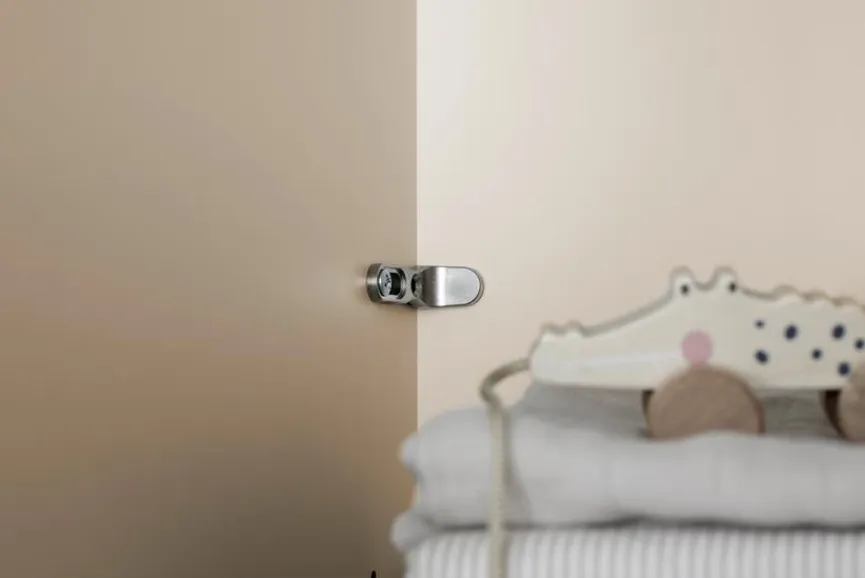 - Aus Spanplatte mit kratzfester Melaminharzfolie in Cashmere-Beige, Deckplatten und Absetzung von Kommode, Schrank und Wickelaufsatz aus Spanplatte mit kratzfester Melaminharfolie in Skandinavian Wood, Bett und Füße aus Massivholz in Buche