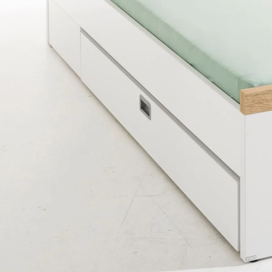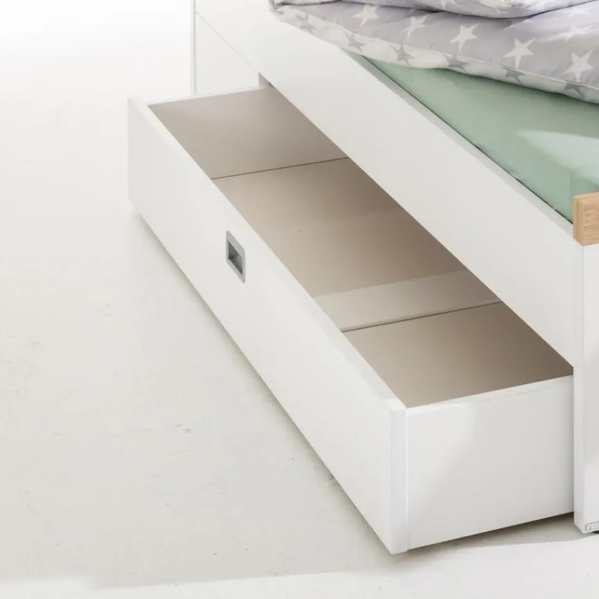 - Der Bettkasten erstreckt sich mit 150 cm ca. über 3/4 der Länge des Bettes aus der gleichnamigen Serie