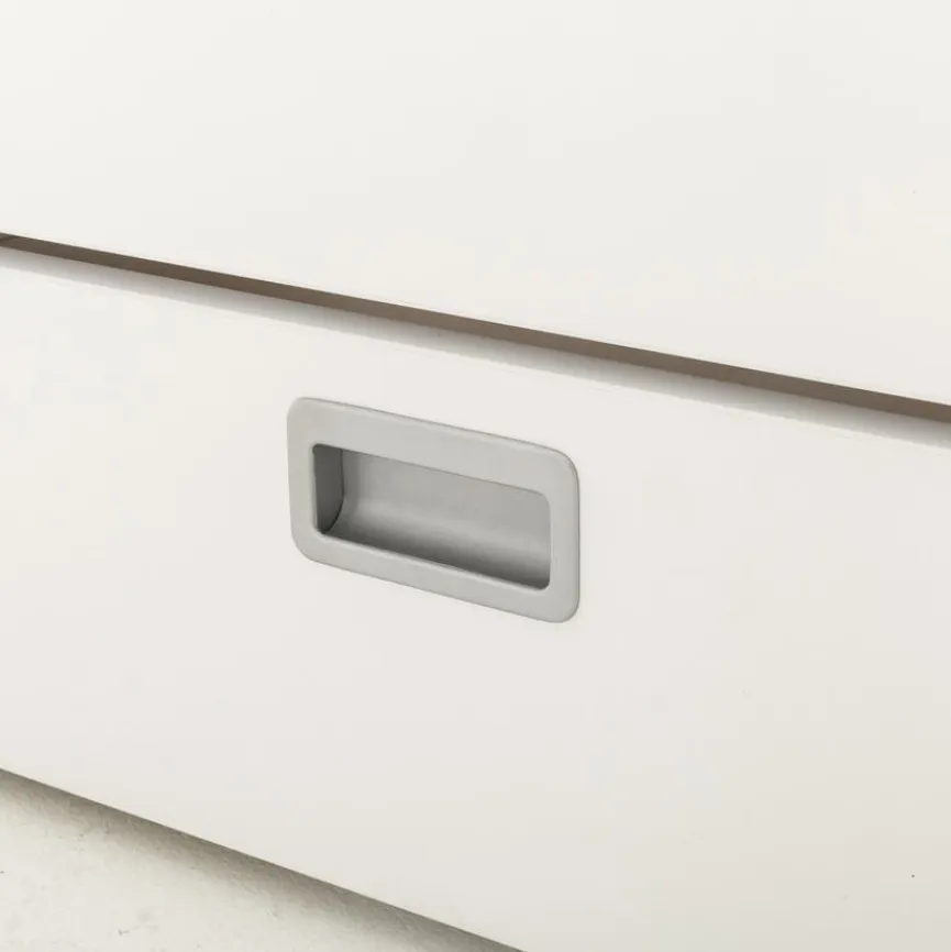 - Aus Holzwerkstoff (Spanplatte) mit hochwertiger Dekorfolie in Kreideweiß
