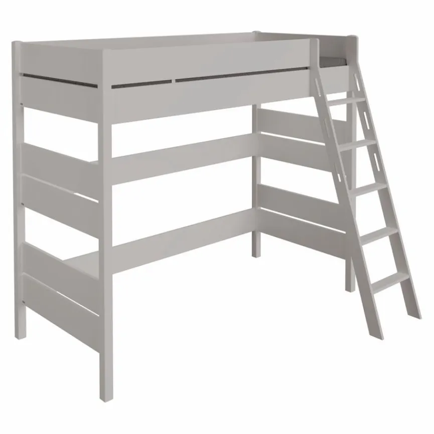 - Aus Holzwerkstoff (Spanplatte) mit kratzfester Melaminharzfolie in kieselgrau, Bettpfosten und Leiter aus massiver und kieselgrau lackierter Buche