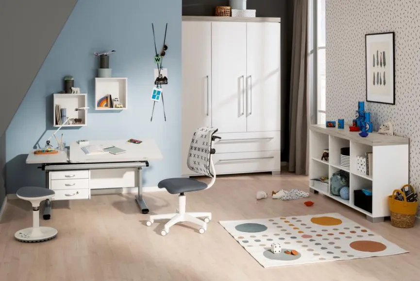 - Stufenlose Sitzhöhenverstellung von 36 – 46 cm mittels speziell für Kinder geeigneter Gasfeder