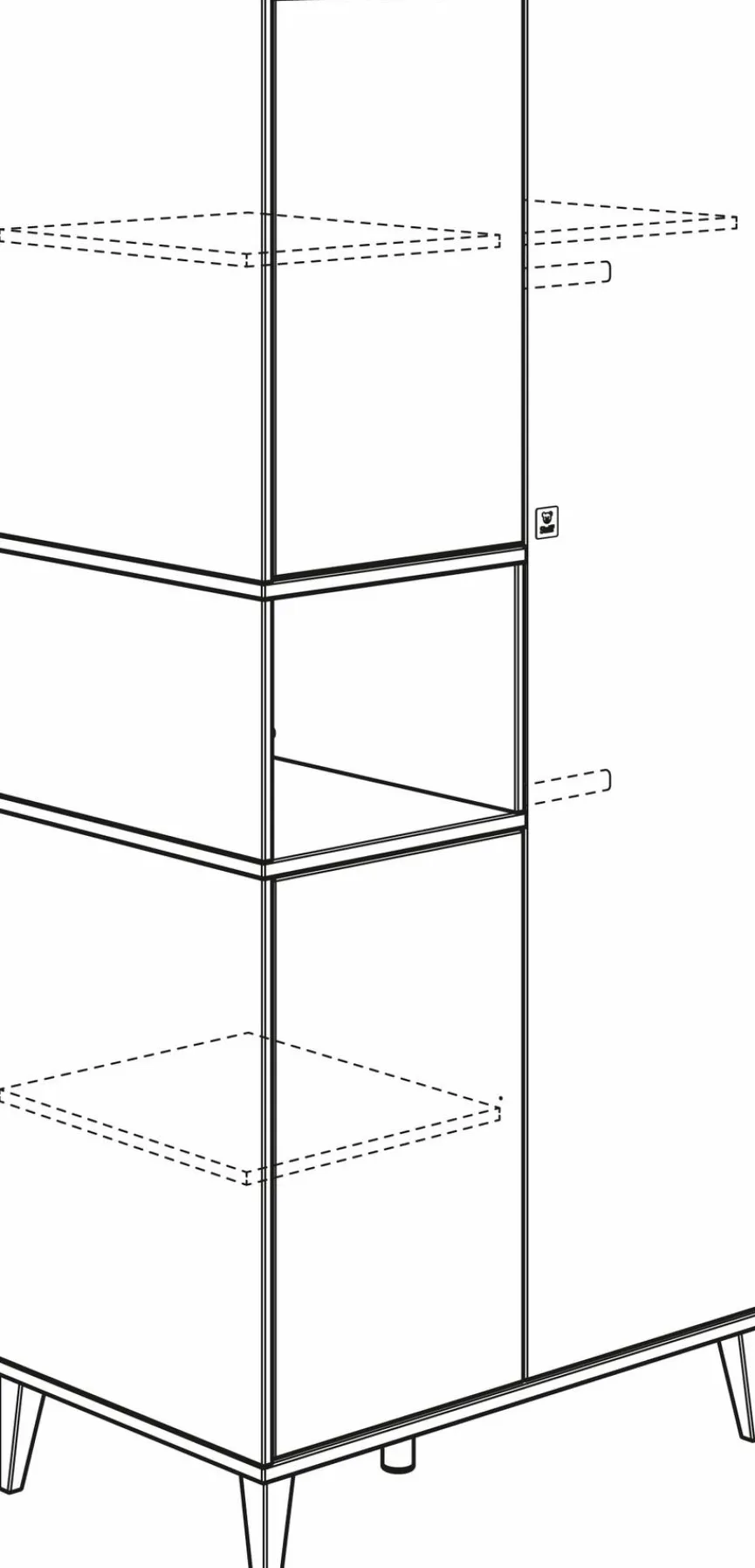 - Jeder Einlegeboden bis max. 25 kg belastbar, jede Kleiderstange bis max. 30 kg belastbar