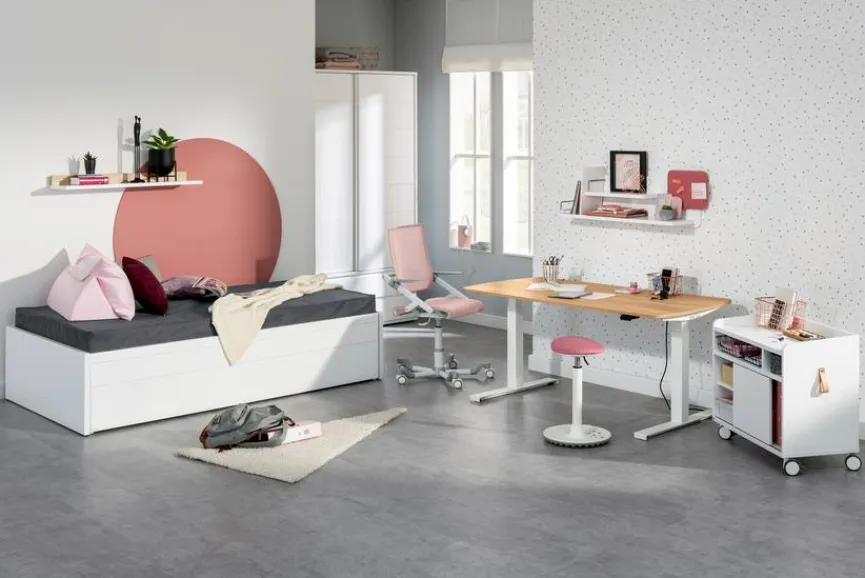 - Stufenlose Sitzhöhenverstellung von 52 – 76 cm mittels speziell für Kinder geeigneter Gasfeder