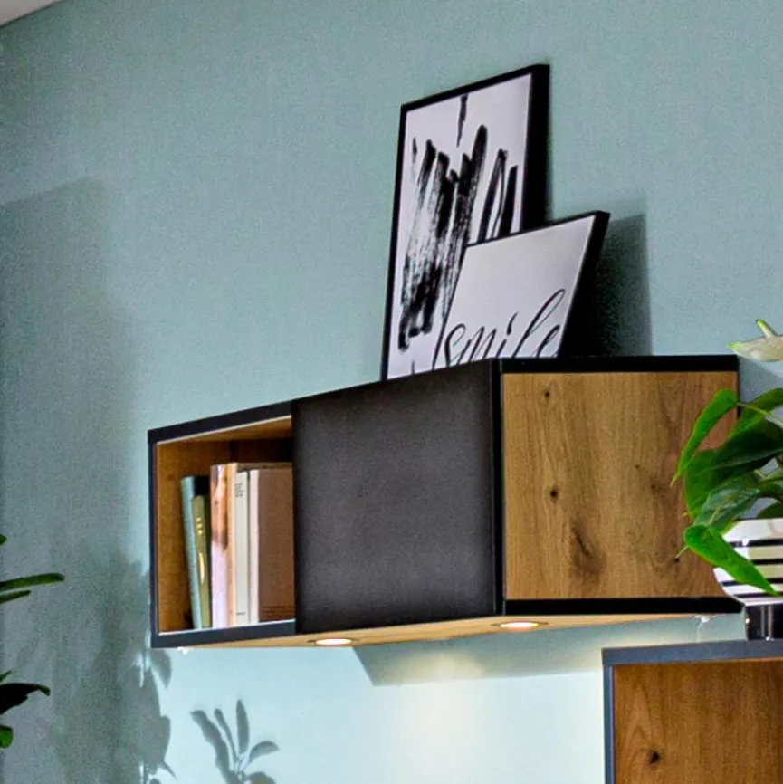 Mit dem Hängeregal NXTstep von Rudolf verleihen Sie Ihrem Zuhause ein trendiges Flair, denn das ansprechende Design kombiniert eine rustikale Holzoptik mit kontraststarken Elementen, die an Stahl erinnern. Dadurch eignet sich dieses Wandregal besonders gut für den ausdrucksstarken Industrial-Look, wo es sich mühelos ins Gesamtbild einfügt. Das Hängeregal NXTstep bietet in einem offenen, sowie einem Fach mit Schiebetür zusätzlichen Stauraum für Persönliches und Liebgewonnenes.