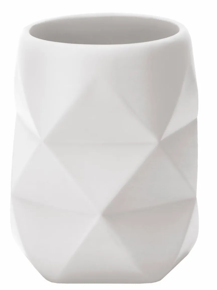 Ein dreidimensionales, aus dreieckigen Strukturen bestehendes Oberflächendesign macht den Zahnputzbecher Crackle von Kleine Wolke zum Blickfang. In ein modern eingerichtetes Zimmer passt dieser Look natürlich außerordentlich gut. Besonders in Kombination mit den anderen Accessoires der Serie ist der Zahnputzbecher Crackle aus dem Hause Kleine Wolke eine sehr schöne Idee für Bad.
