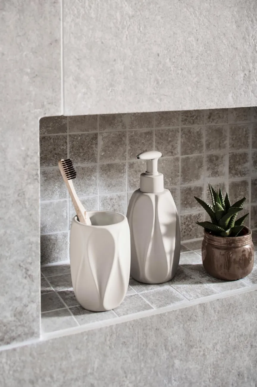 Der Zahnputzbecher Trevi von Kleine Wolke lässt sich gut greifen, wartet mit einer angenehmen Haptik auf und sieht außerdem großartig aus. Fließende Konturen bringen Charme und Grazie mit sich. Besonders gut kann der Zahnputzbecher Trevi natürlich mit den weiteren, ähnlich gestalteten Accessoires dieser Serie zur Geltung kommen.