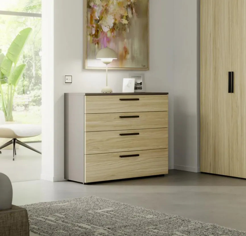 Das Label Rudolf präsentiert Ihnen mit der Kommode Cozy ein ausgesprochen geschmackvolles Möbelstück. Vor allem die Front mit einer Dekorfolie in Eiche und die optisch abgesetzten Griffe bestimmen den ansprechenden Look. Auch im Hinblick auf Qualität lässt die hochwertig verarbeitete Kommode Cozy mit Sicherheit keine Wünsche offen.