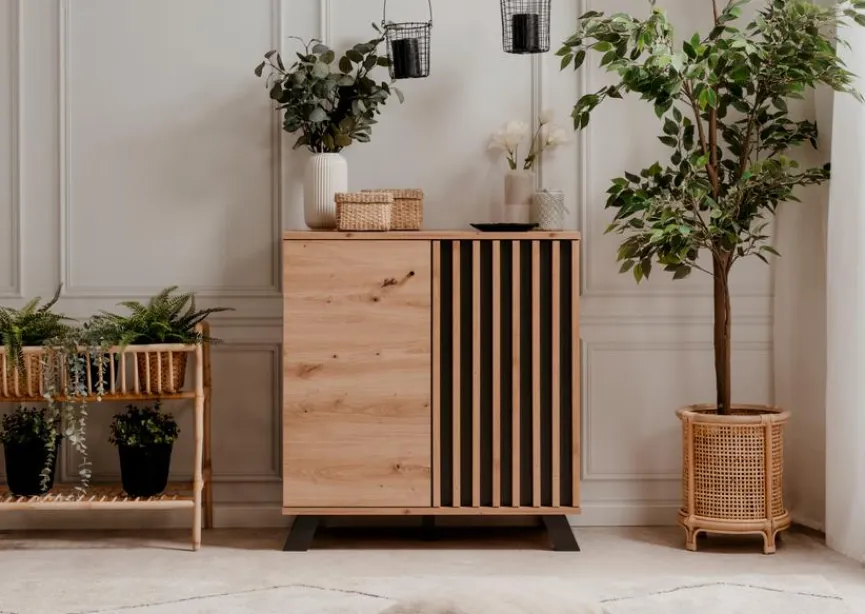 Mit der schicken Kommode Medan schaffen Sie zusätzlichen Stauraum im Flur, Wohn- , Schlaf- oder Arbeitsbereich. Hohe Füße und eine aparte Lamellenfront machen das kompakte Möbelstück zu einem Hingucker, der sich durch eine geradlinige Formensprache auszeichnet und Ihr Zuhause auf stilvolle Weise bereichert. Auf der Oberseite der hochwertigen Kommode Medan können Sie zudem hübsche Objekte wie Vasen und Windlichter präsentieren oder eine Lampe platzieren.