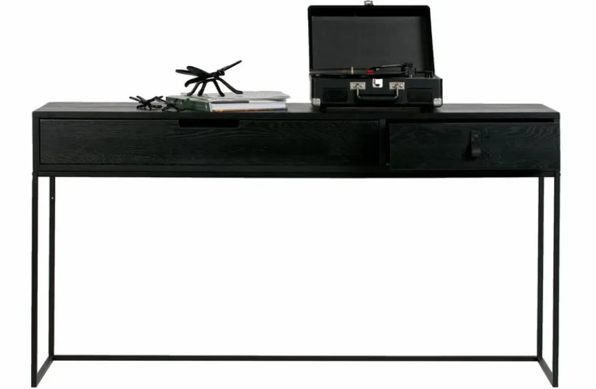 Die Konsole Silas beeindruckt mit einer geradlinigen, herrlich schlank wirkenden Formensprache. Ein als Lederschlaufe gestaltetes Griffelement verleiht dem Möbel, das trotz des minimalistischen Designs jede Menge Stauraum bietet, eine originelle Note. Kombinieren Sie die Konsole Silas mit Interieur im trendigen Industrial-Style oder auch mit einer Einrichtung im aufregenden Vintage-Chic!
