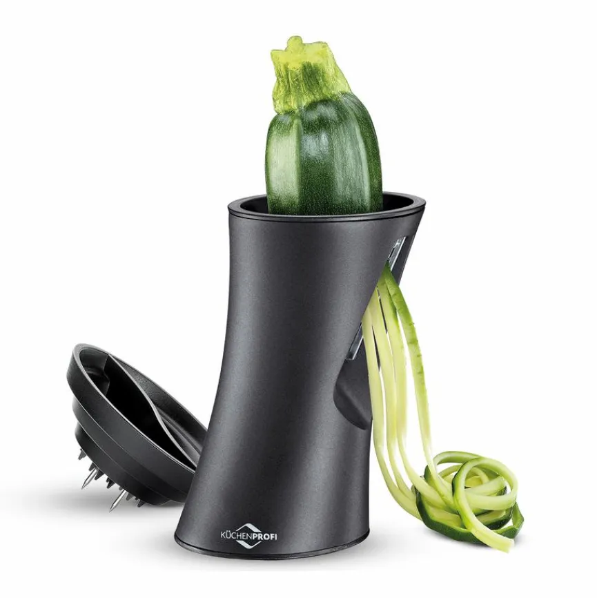 - Mit 2 extra scharfen Messern, in zwei Stärken, Restehalter und Reinigungsbürste