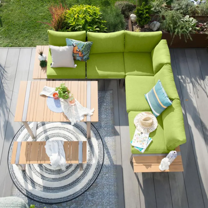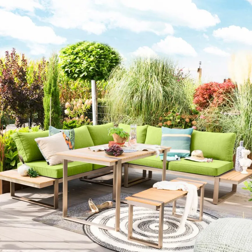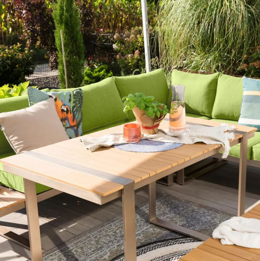 - Set besteht aus Tisch, 2-Sitzer rechts, 2-Sitzer links, Ecke und Bank
