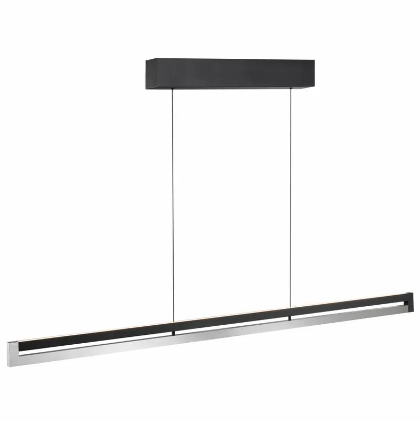 Klares Design trifft auf schlichten Minimalismus und vereint sich bei der LED-Pendelleuchte Metall, schwarz/chrom von lumiCouture zu purer Eleganz. Der Leuchtkörper dieser LED-Pendellampe ist an zwei filigranen, beweglichen Drähten aufgehängt und lässt das Licht aus einer überaus schmalen Führung heraus ins Ambiente fluten. Egal, ob über dem Couchtisch, im Konferenzraum oder über der Küchenanrichte platziert – die LED-Pendelleuchte Metall, schwarz/chrom steht für einen aparten, modernen Lifestyle.