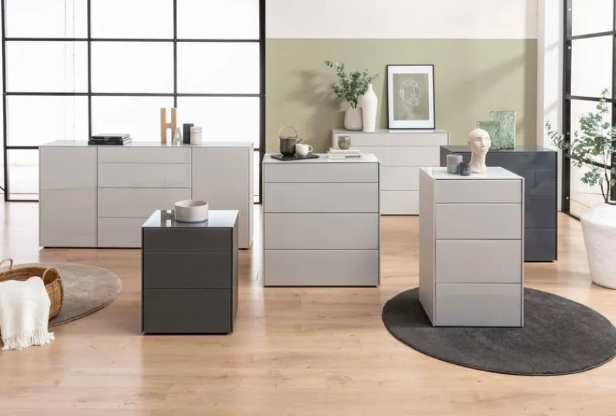 Die Kommode Monza von Mäusbacher vereint ästhetisches Design mit funktionaler Vielseitigkeit. Mit geräumigen Schubladen und Fächern bietet die Kommode Monza ausreichend Platz für Ihre Habseligkeiten, die Sie vor neugierigen Blicken schützen möchten. Ob im Schlafzimmer, Wohnzimmer oder Flur, die Kommode passt in nahezu jede Umgebung.