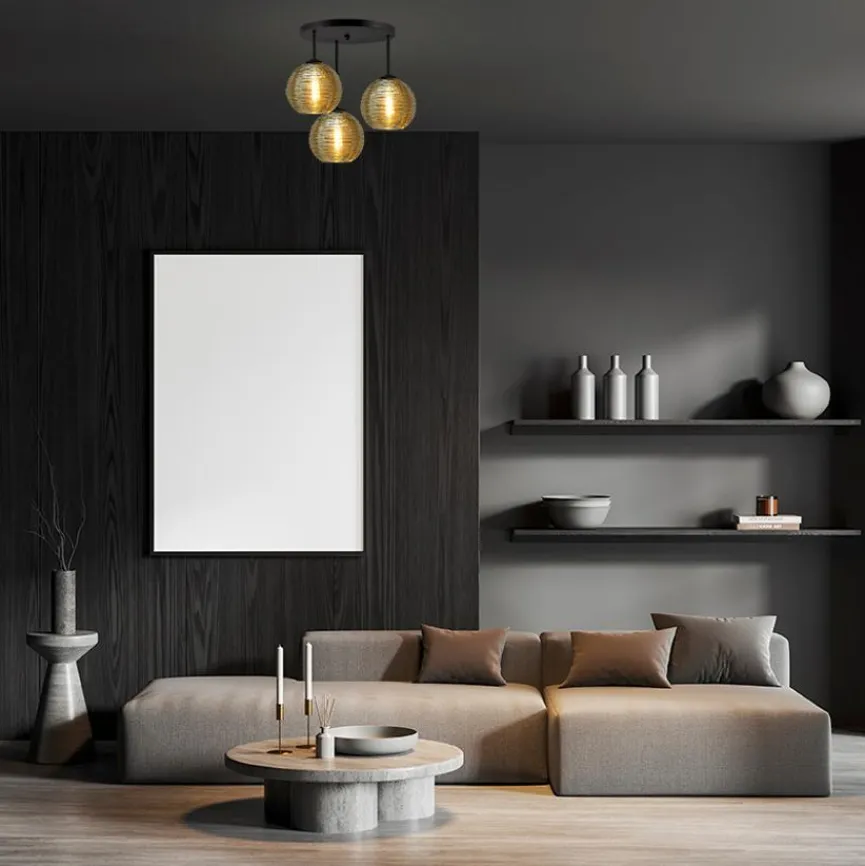 Ein strahlend schönes Design-Trio ist die Deckenleuchte Quinto von masterlight. Die drei Leuchtelemente dieser charmanten Deckenlampe sind so arrangiert, dass sie sich in unterschiedlicher Höhe befinden und perfekt miteinander harmonieren. Besonders apart sind die runden Schirme in Glasoptik. Ihre Oberfläche wurde als natürlich wirkende, vertikale Reliefstruktur gearbeitet. Das Licht der Deckenleuchte Quinto wird so leicht gebrochen und verteilt sich ausgewogen im ganzen Raum.