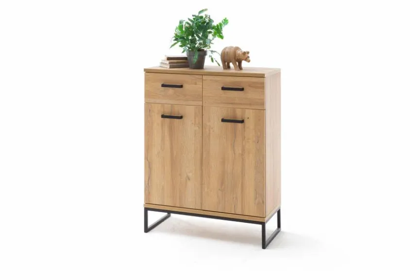 Mit seinem geradlinigen Gestell und den puristischen Bügelgriffen im schwarzen Mattton steht der Schuhschrank Toledo aus dem Hause MCA für einen modernen und sachlichen Look. Da der Korpus und die Front beim Schuhschrank Toledo von MCA in Grandson Oak Melamin gestaltet sind, kommen darüber hinaus auch sehr wohnliche Designaspekte ins Spiel.