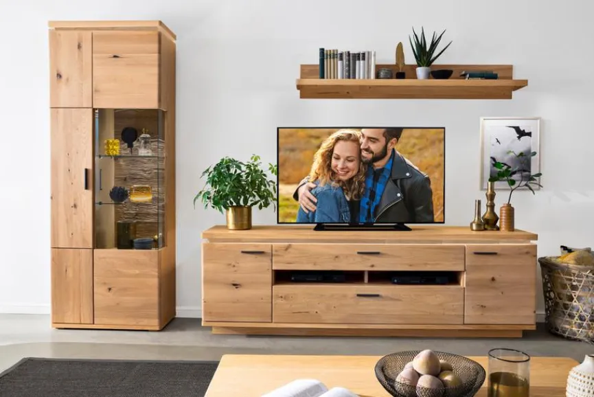 - Wohnwand besteht aus TV-Lowboard, Vtrine und Wandboard