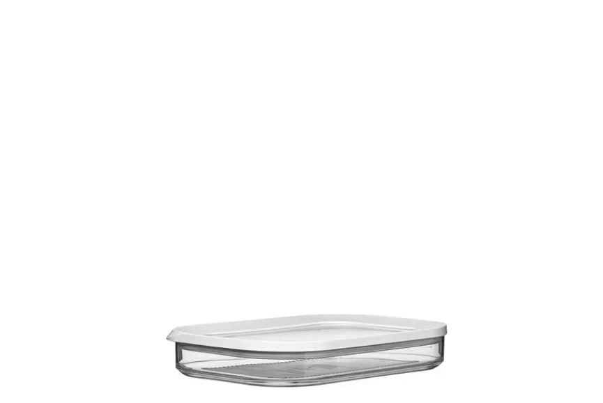Die flache Vorratsdose Modula 550 ml hat die richtige Dimension zum Frischhalten von aufgeschnittenen Lebensmitteln wie Käse, Wurst oder Schinken. Ideal erweist sich das Übereinanderstellen von zwei oder mehr Dosen. Öffnen Sie Ihren Kühlschrank und Sie haben Ihre Vorräte mit Hilfe der Vorratsdose Modula 550 ml wohlgeordnet im Blick.