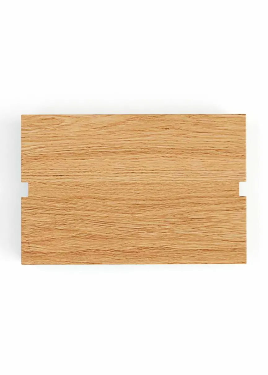 Die Ablage aus hochwertigem Holz wurde speziell für das Wandregal RIVO bzw. RIVO S hergestellt, sodass die Ablagen anhand eines einfachen Stecksystems auf das Metallgestell gesteckt und anschließend mit einer kleinen, im Ergebnis unsichtbaren, Madenschraube fixiert werden.