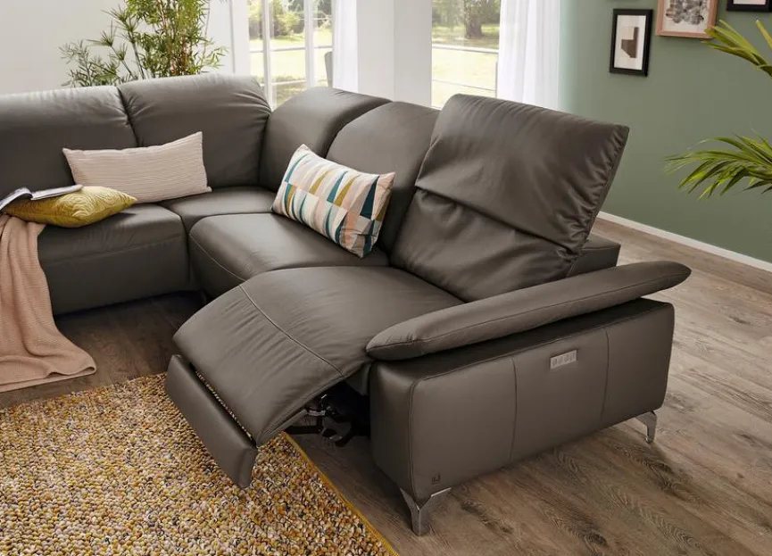 - Inkl. 4 manuelle Kopfteilverstellungen, 1 Armteilverstellung und 1 vollmotorische (motorische Verstellung von Fuß-, Rücken- und Kopfteil) Relaxfunktion im 1,5-Sitzer mit Armlehne