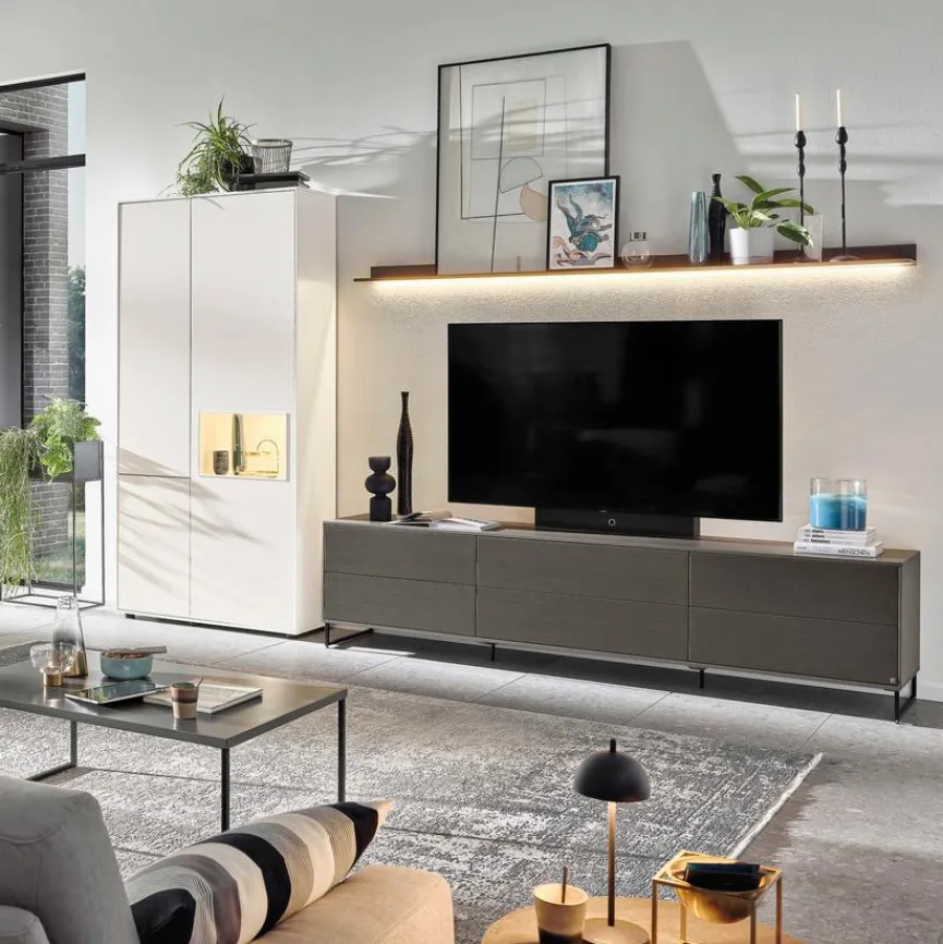 - Aus Holzwerkstoff (Spanplatte, MDF) mit Lack in weiß; inkl. ABS-Kanten in weiß