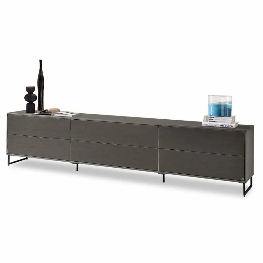 - TV-Lowboard mit 5 Schubkästen, 1 Klappe und 1 Kabeldurchlass