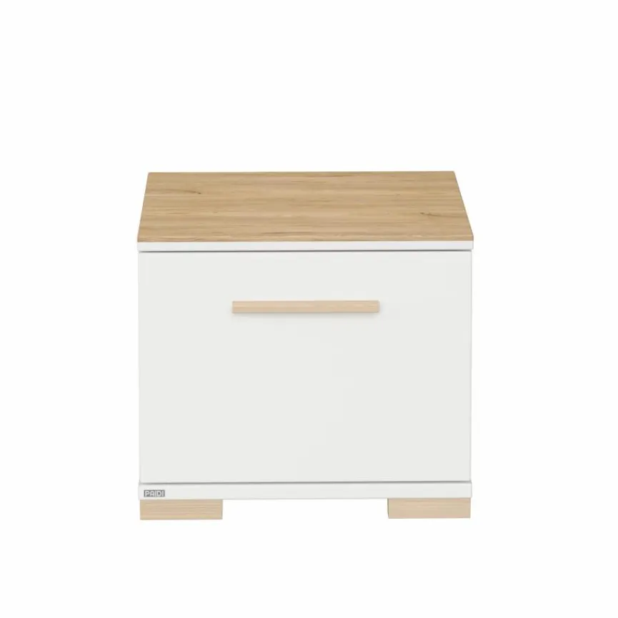 Der hochwertige Nachttisch Enie von Paidi wurde besonders umweltbewusst produziert und lässt in Sachen Nachhaltigkeit und Qualität nichts zu wünschen übrig. Mit ihrem klar strukturierten Design ist diese Nachtkonsole zudem eine geschmackvolle Wahl für das heimische Schlaf- oder Kinderzimmer. Die Absetzung in warmer Holz-Optik verleiht dem Nachttisch Enie eine besonders attraktive Note.