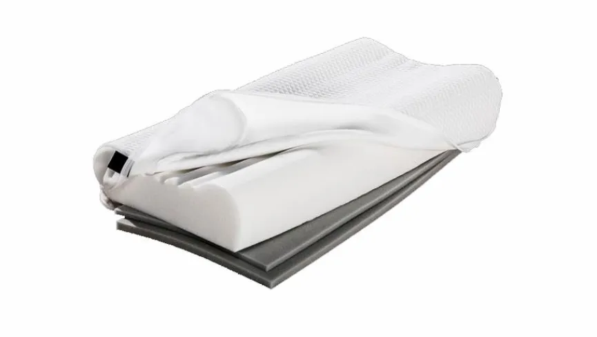 - Ein der Nacken- und Kopflinie angepasster Formkern aus hochwertigem Aquapur-Schaum.
