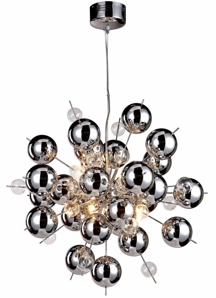 Mit der Pendelleuchte EXPLOSION präsentiert Näve einen extravaganten Einrichtungsgegenstand. Verchromte strahlenförmig angeordnete Kugeln verleihen der Pendelleuchte EXPLOSION ein exklusives Äußeres, das einen modischen Akzent in Ihrem Zuhause setzt. Zudem sorgt die Pendellampe von Näve dank vieler kleiner Leuchtkörper für eine gleichmäßige Ausleuchtung Ihres Zimmers.