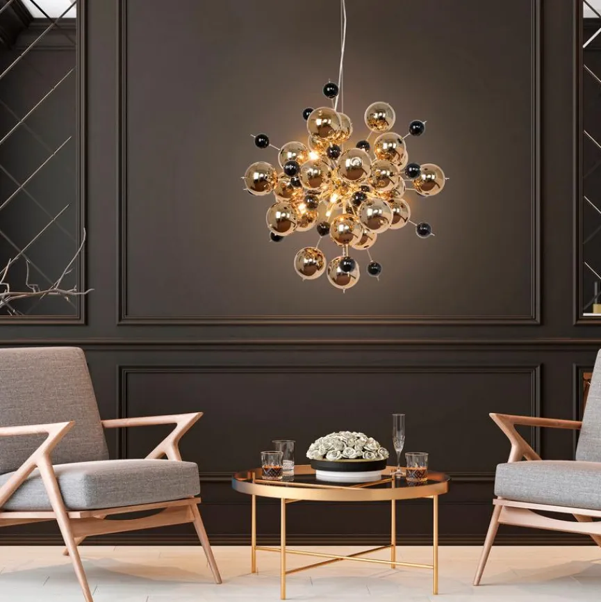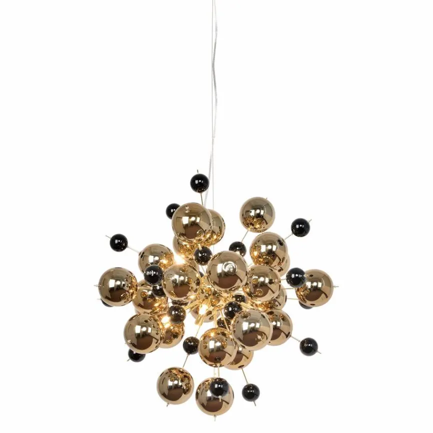Dank der imposanten Kugelelemente wirkt die Pendelleuchte Explosion von näve sehr elegant. Sobald das Licht der zehn Flammen sie zum Glitzern bringt, setzt die Pendellampe einen unnachahmlichen Wohnakzent. Natürlich tragen Sie mit der Pendelleuchte Explosion aus dem Hause näve ebenso zu gemütlichen Lichtverhältnissen im Raum bei.