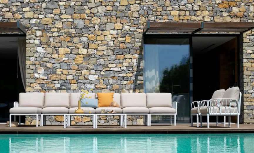 - Sitz aus Polyurethanschaum mit 53 % recyceltes Sunbrella® Polyacryl, 47% fasergefärbtes Sunbrella® Polyacryl in taupe