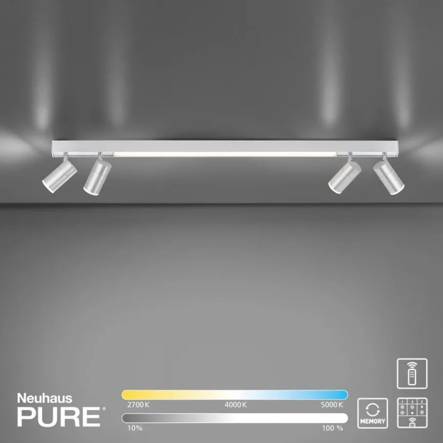 - Mit Fernbedienung zum Dimmen und Einstellen der Farbtemperatur (2.700 – 5.000 Kelvin) und getrenntem Schalten von Spotköpfen ud Lichtleiste