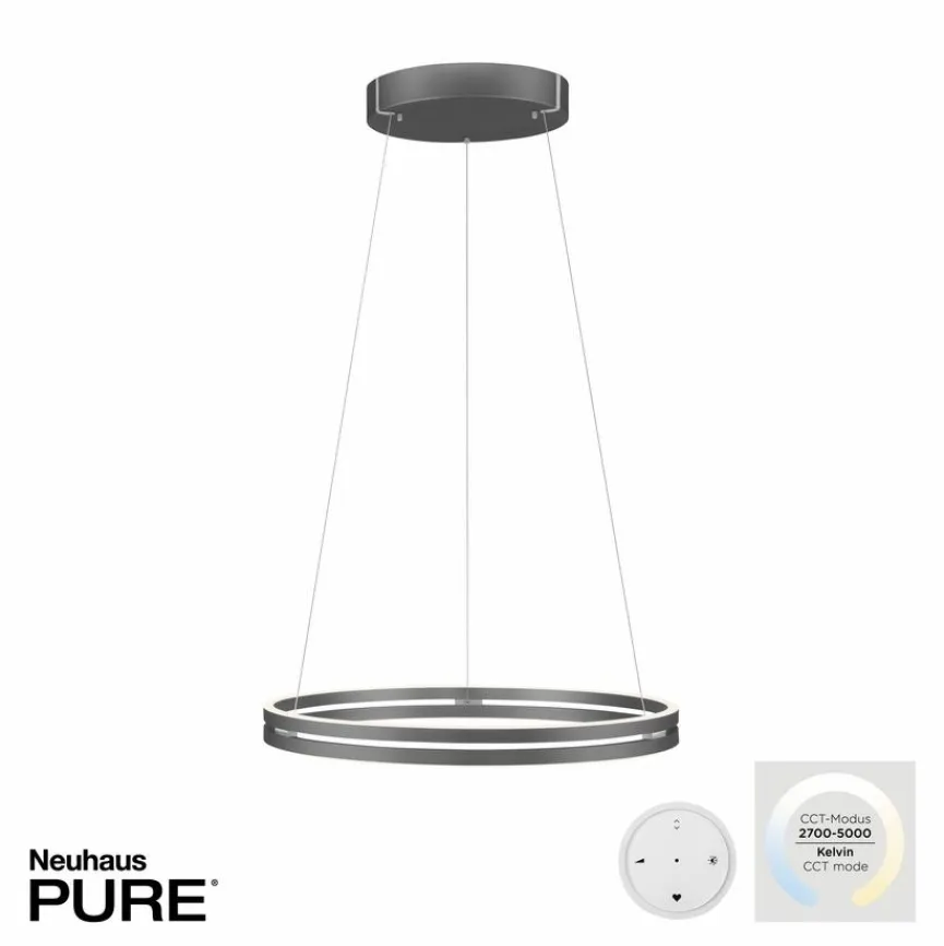 Wenn Sie die attraktive LED-Pendelleuchte Pure-E-Loop aus der Leuchtenmanufaktur Paul Neuhaus in Ihrem Wohnbereich installieren, besitzen Sie ein trendiges Highlight der Beleuchtungstechnik. Diese LED-Pendellampe punktet dank der integrierten motorischen Höhenverstellbarkeit und weiterer Features wie der CCT-Farbtemperatursteuerung. Begeistern kann die LED-Pendelleuchte Pure-E-Loop zudem durch ihre hohe Fertigungsqualität.