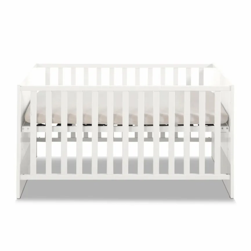 - Babybett mit 2 herausnehmbaren Schlupfsprossen und 4-fach höhenverstellbarem Lattenrost, belastbar bis max. 75 kg; umbaubar zum Juniorbett durch optional gegen Mehrpreis erhältliche Bettseiten